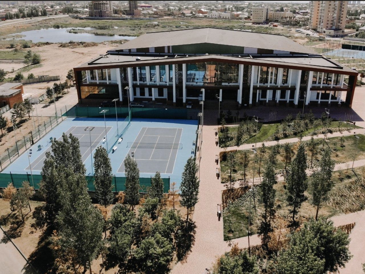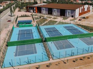 8 крытых и открытые летние корты в количестве 5 площадок, покрытие кортов — HARD, GreenSet